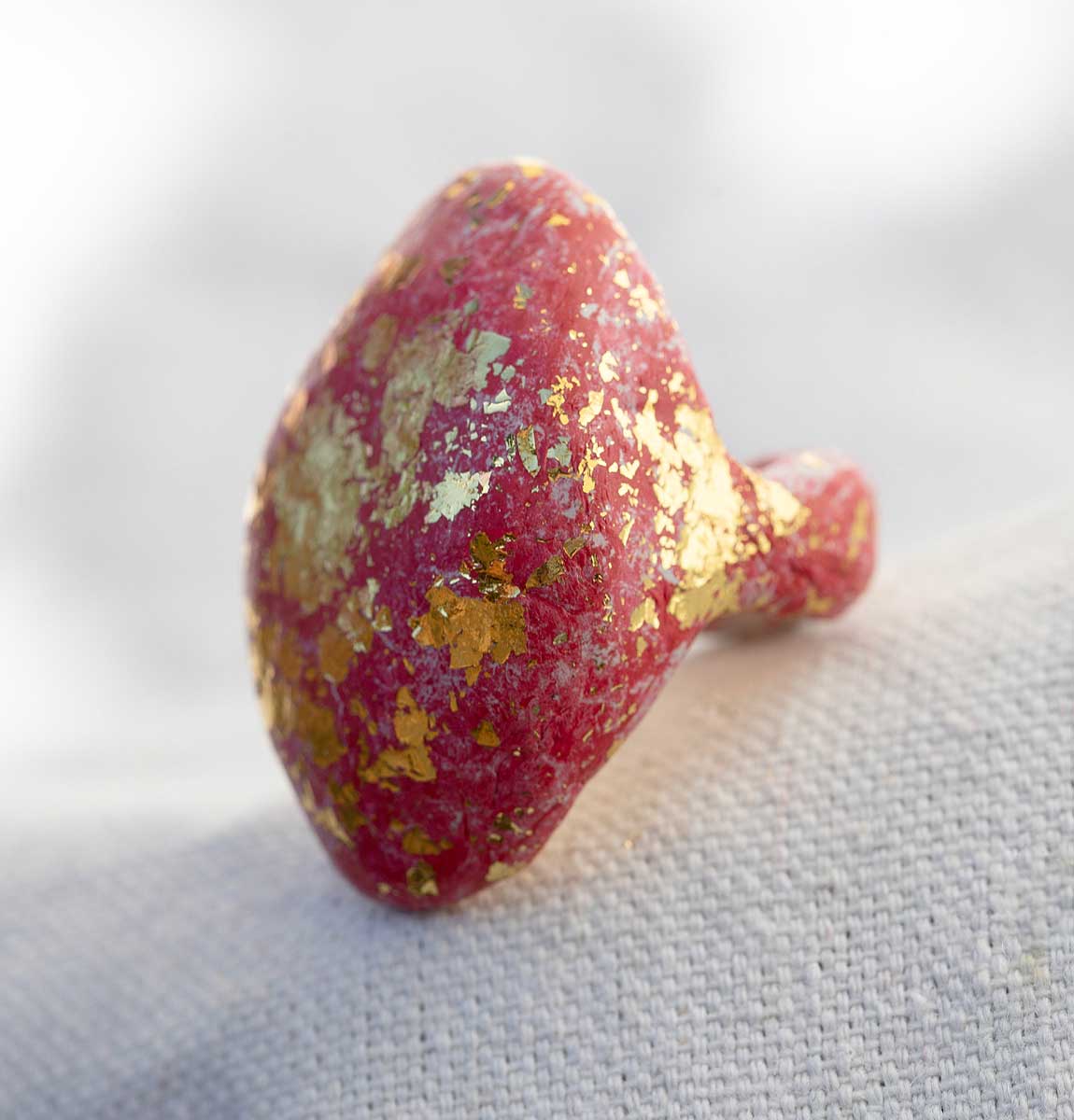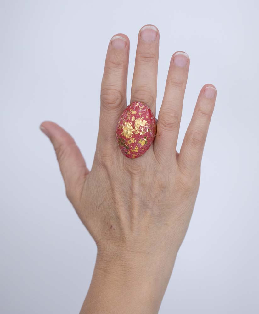 Oval Red Ring with Gold Leaf. Size 7.