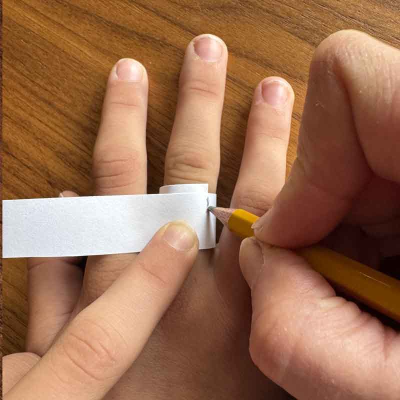 Cut a thin strip of paper. Wrap it around the base of your finger.