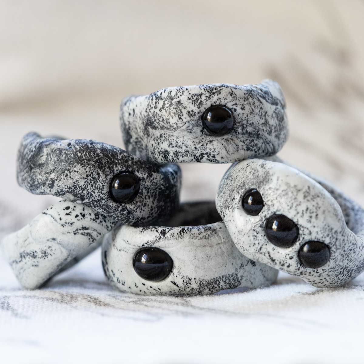 Each ring is handmade in California and may not be a perfect circle. Sizes are approximate—please check your size using our ring guide before ordering.