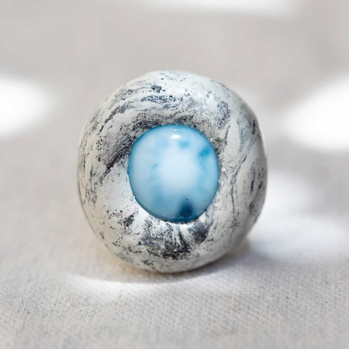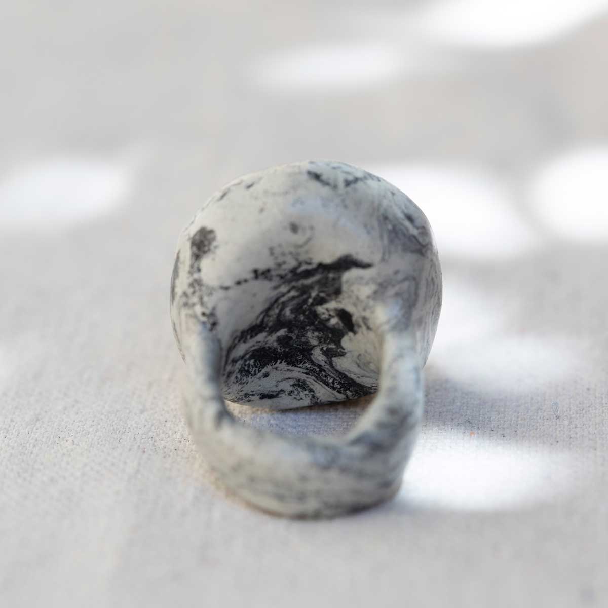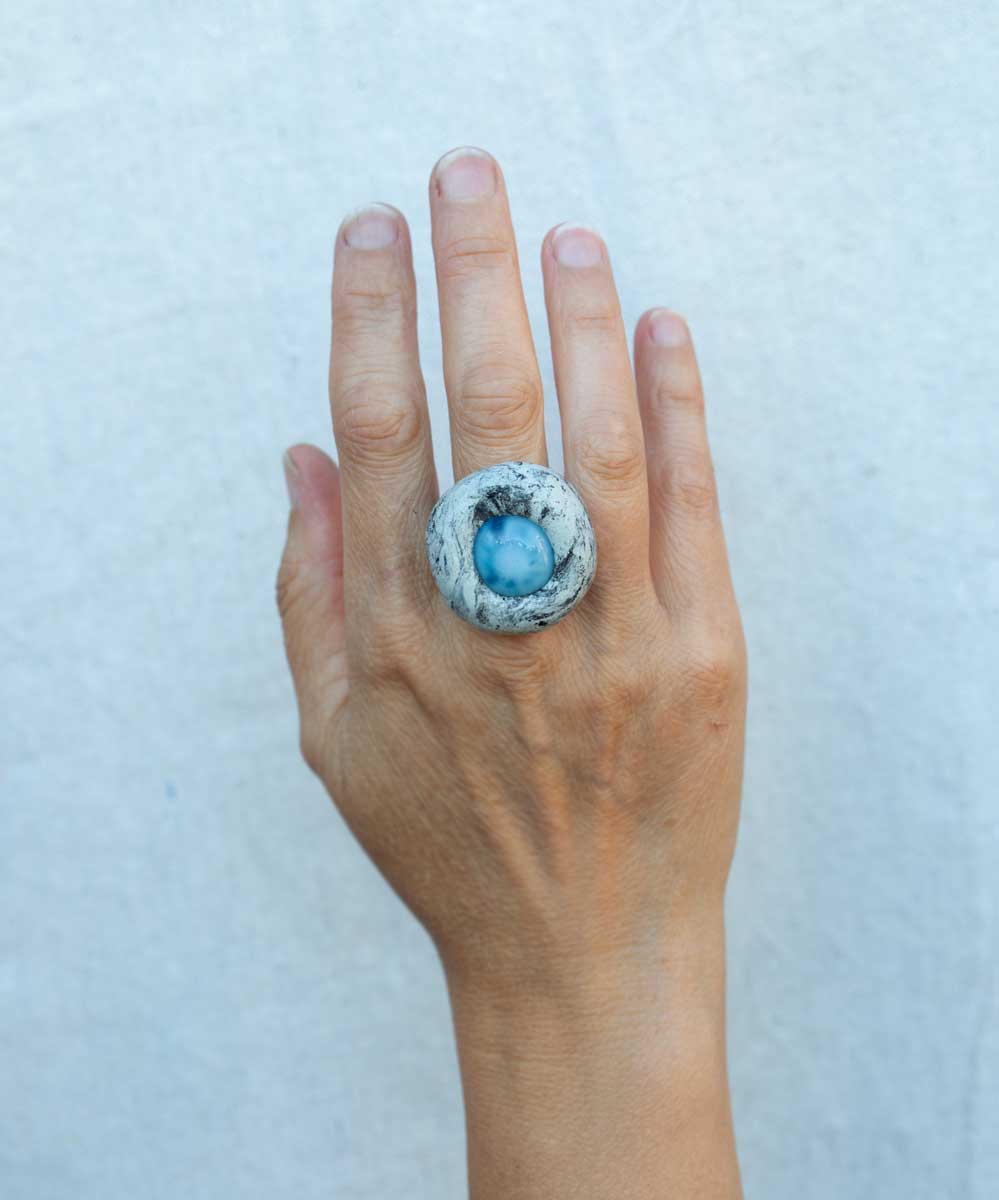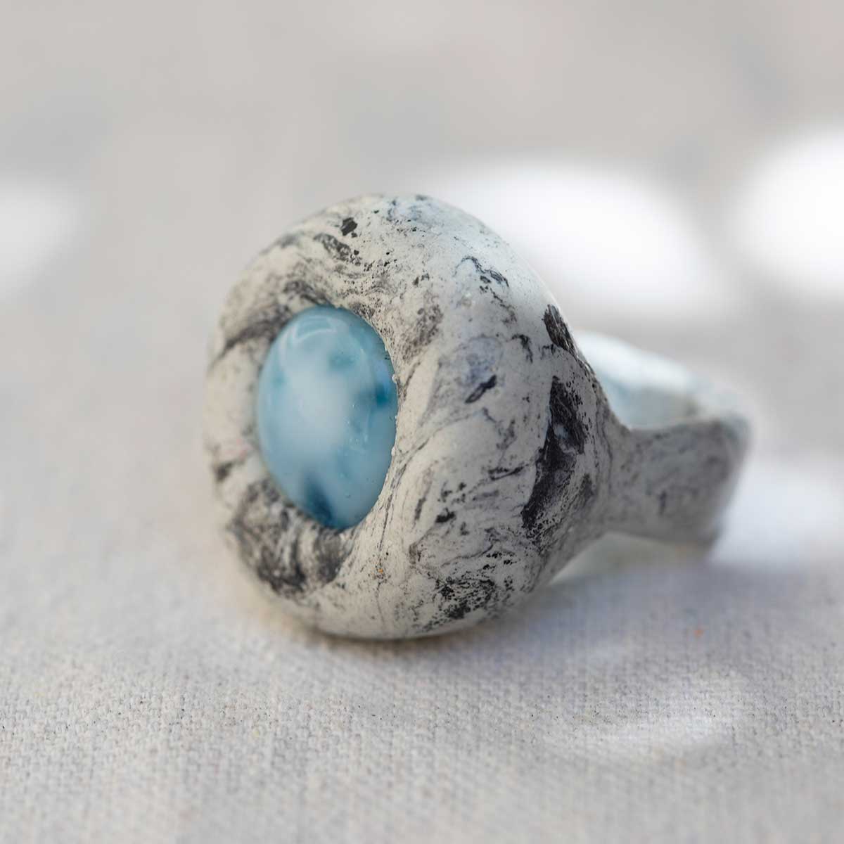 Sculpted White Stone and Glass Ring. Size 9.